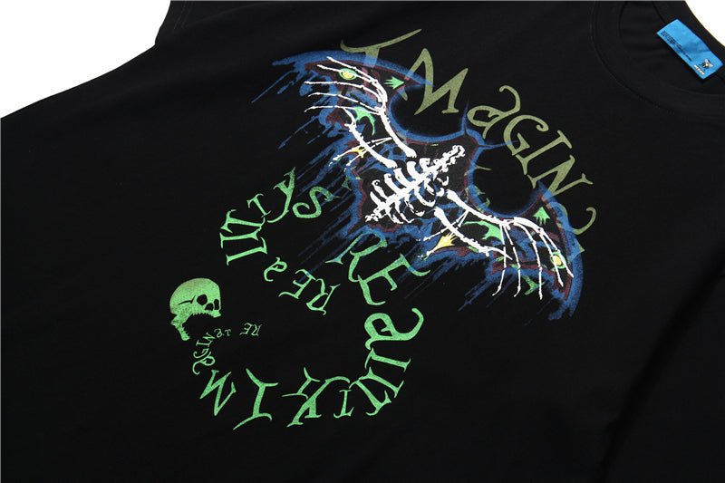Bat Skull Print T Shirt Men Hip Hop T-Shirts Streetwear Summer Tshirt Short Sleeve Cotton Oversized Gray Tops Tees